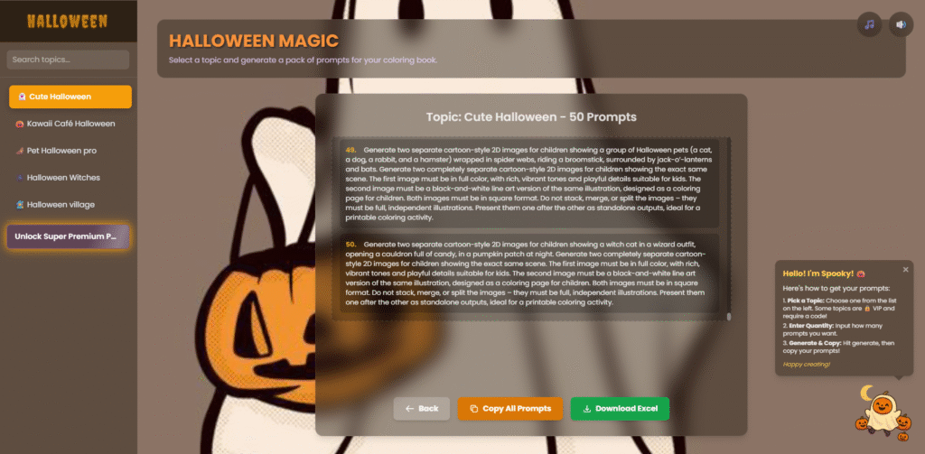 With these 5 high demand Halloween themes, you can generate countless coloring book prompts and turn them into profitable creations.